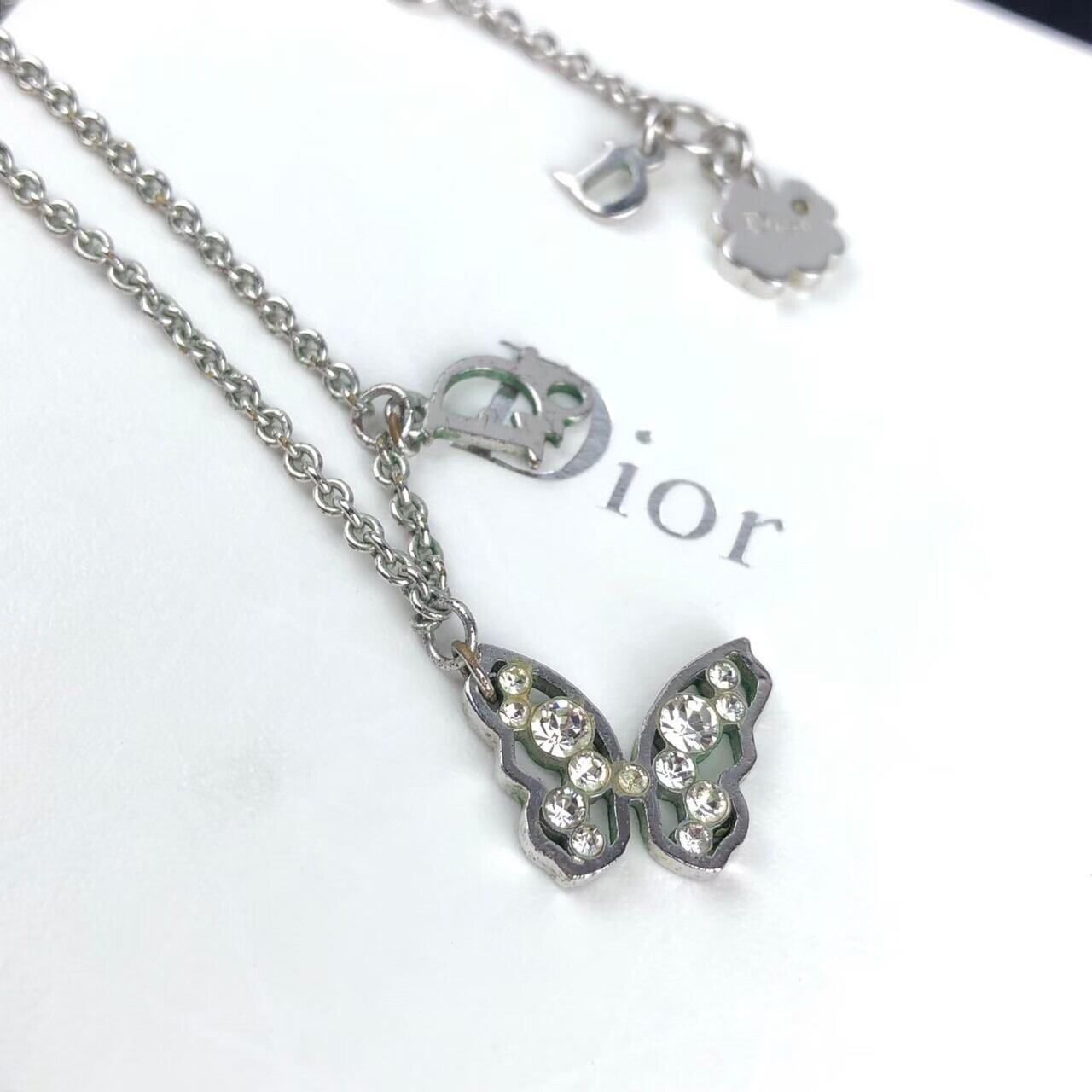 ラインストーン バタフライ ネックレス シルバー